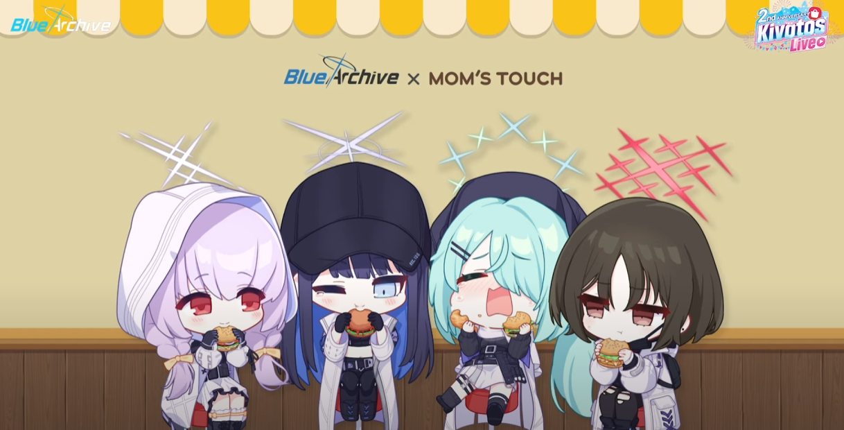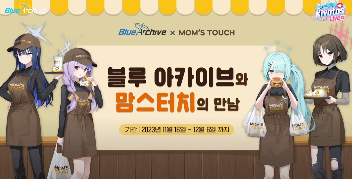 두 번째로는 맘스터치와의 콜라보레이션이다. 최근 일본에서 편의점과 콜라보를 하기도 했듯이 블루아카이브는 예전에도 다양한 업체와 콜라보레이션을 진행했었다.